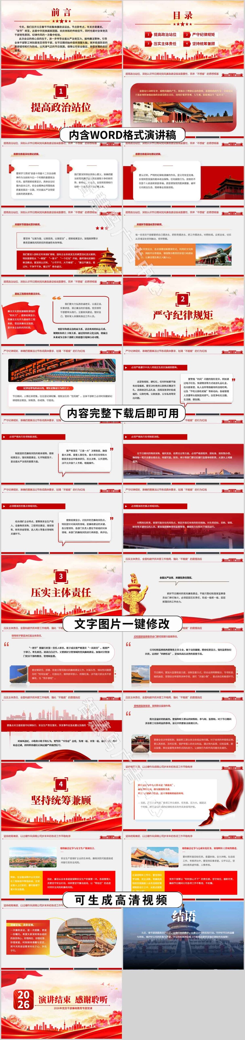 2026年春节节前集体廉政谈话会(PPT课件+演讲稿)